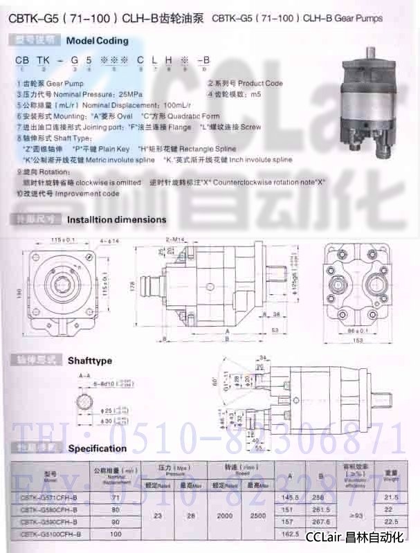 詳細(xì)信息 CBTK-G571CLH-B,CBTK-G580CLH-B,CBTK-G590CLH-B,CBTK-G5100CLH-B,齒輪油泵