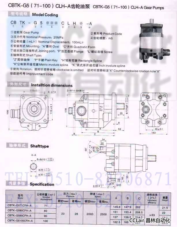 詳細(xì)信息 CBTK-G571CLH-A,CBTK-G580CLH-A,CBTK-G590CLH-A,CBTK-G5100CLH-A,齒輪油泵