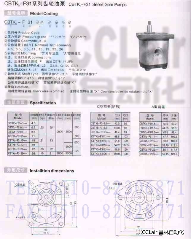 CBTKb-F314.5,CBTKb-F316.5,CBTKb-F318.5,CBTKb-F3111,齒輪油泵
