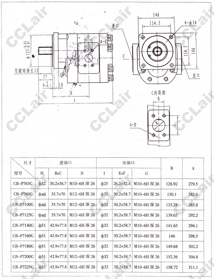 詳細信息 CB-P763G,CB-P780G,CB-P7100G,CB-P7125G,CB-P7140G,CB-P7160G,CB-P7180G,齒輪泵 YUCIYUKEN
