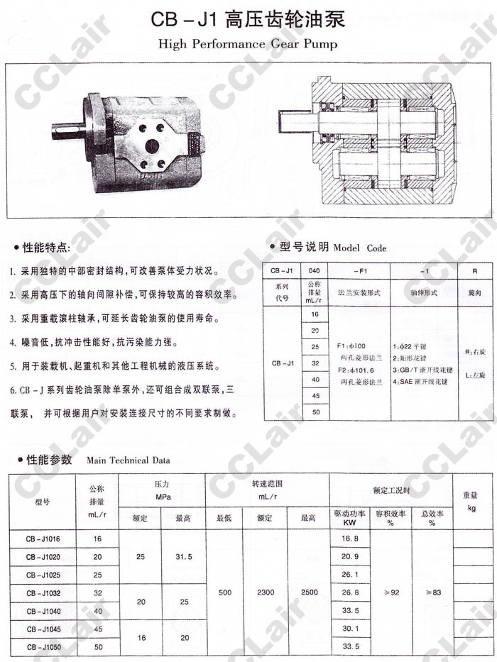 型號: CB-J1016,CB-J1020,CB-J1025,CB-J1032,CB-J1040,CB-J1045,CB-J1050,CB-J1016-F1-1L,高壓齒輪油泵 YUCIYUKEN