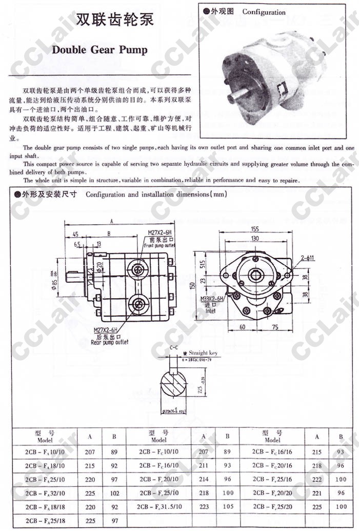 詳細(xì)信息 2CB-FA10/10,2CB-FA18/10,2CB-FA25/10,2CB-FA32/10,2CB-FA18/18,2CB-FA25/18,雙聯(lián)齒輪泵,YUCIYUKEN