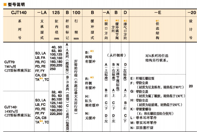 CJT70-SD32,CJT70-FA40,CJT140-CA50,CJT140-FD80,CJT140-TA100,7/14MPa用CJT型標準液壓缸