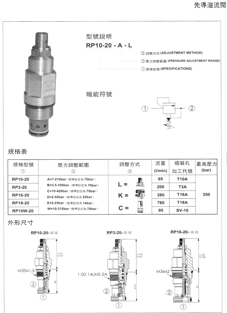RP10-20,RP3-20,RP16-20,RP18-20,RP10W-20,RP10-20-A-L,RP3-20-A-L,先導(dǎo)溢流閥