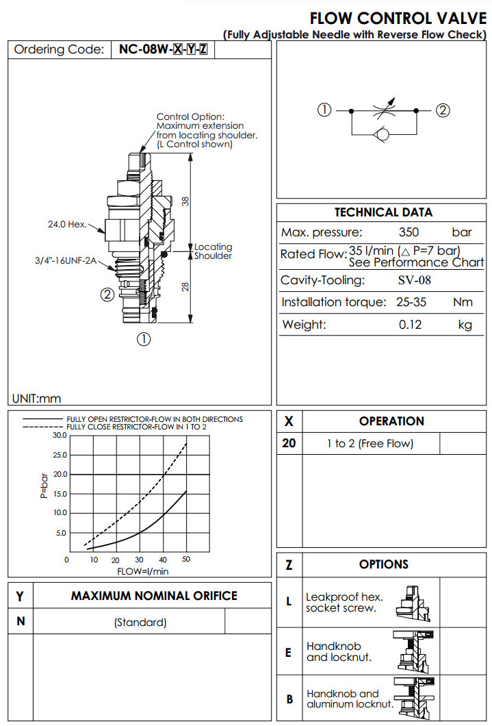 詳細信息 NC-08W-20-N-L,NC-08W-20-N-E,NC-08W-20-N-B,流量控制閥