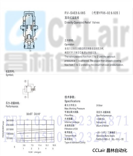 RV-SAE8,直動式溢流閥