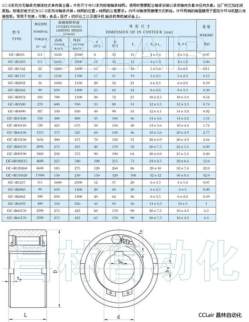 詳細(xì)信息 GC-B835,GC-B1235,GC-B1542,GC-B1747,單向離合器
