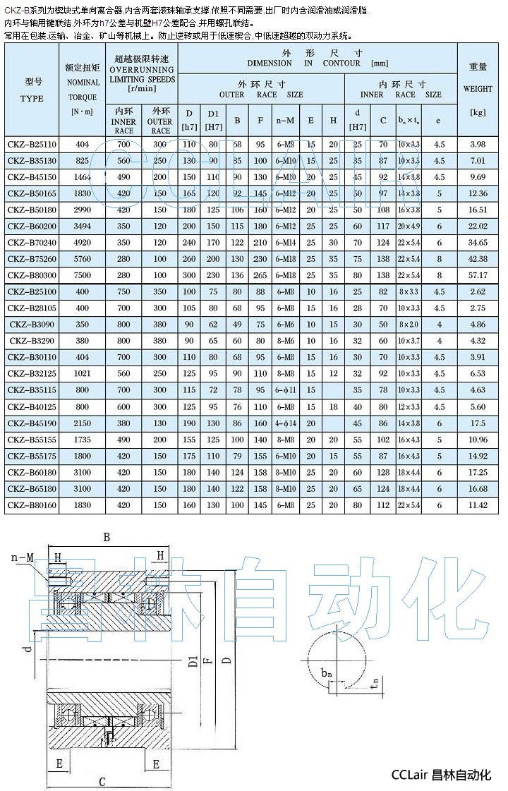 詳細(xì)信息 CKZ-B25110,CKZ-B35130,CKZ-B45150,CKZ-B50165,單向離合器