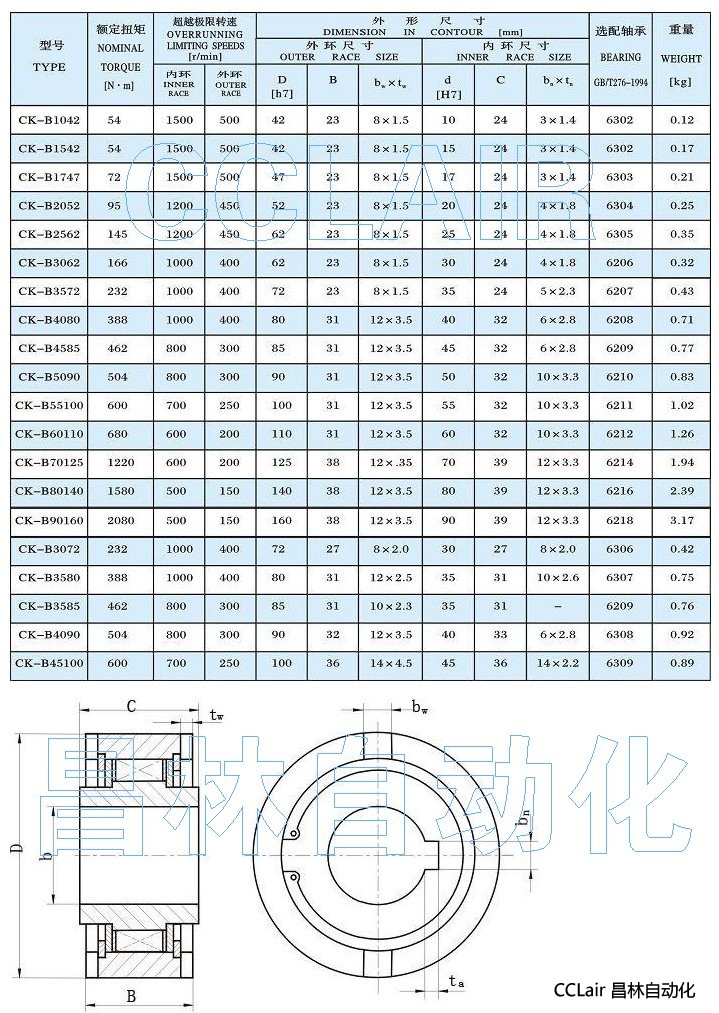 CK-B1042,CK-B1542,CK-B1747,CK-B2052,單向離合器