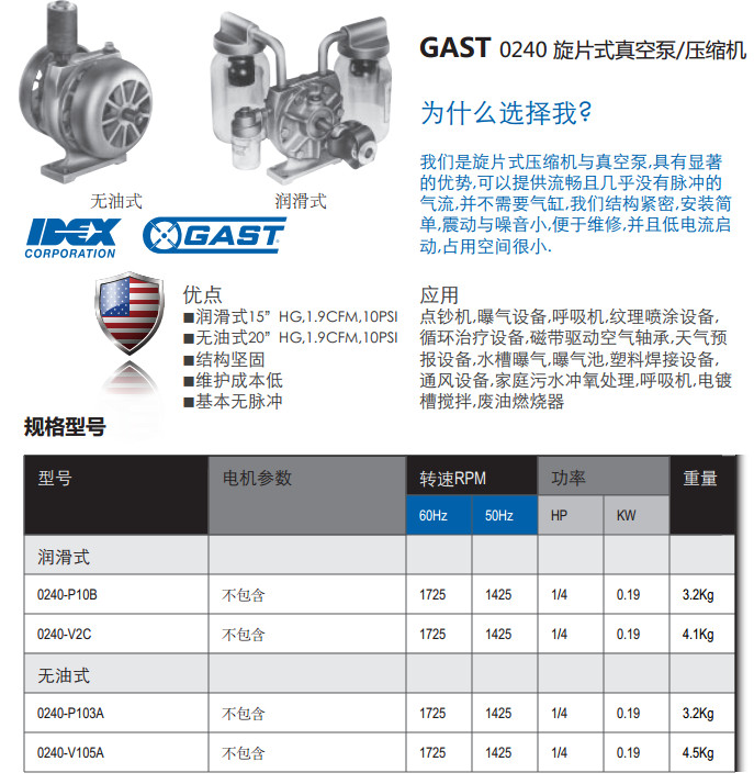 0240-P10B,0240-V2C,0240-P103A,0240-V105A,旋片式真空泵/壓縮機