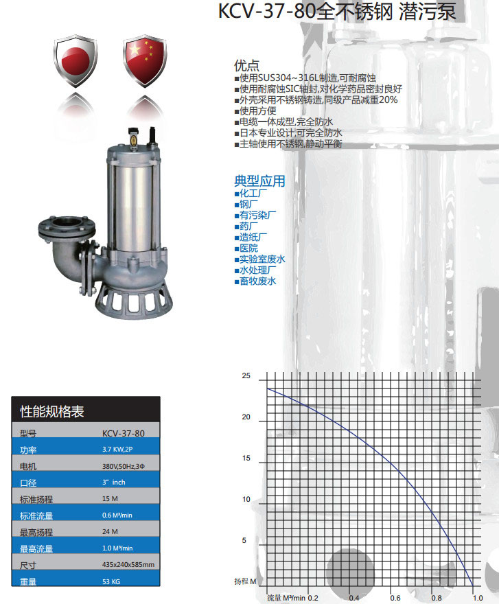 產(chǎn)品: 瀏覽次數(shù):797KCV-37-80,全不銹鋼潛污泵