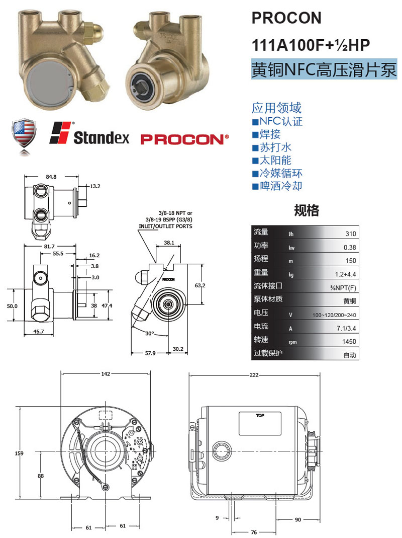 111A100F+½HP,黃銅NFC高壓滑片泵