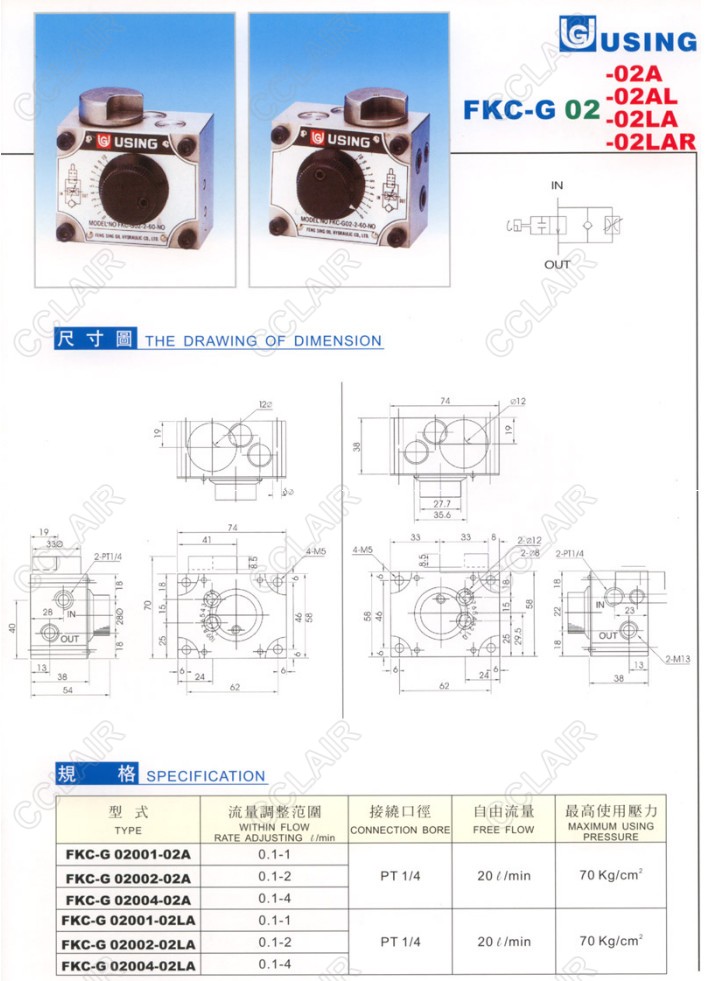 USING峰欣 FKC-G02001-02A,FKC-G02002-02A,FKC-G02004-02A,FKC-G02001-02LA,流量控制閥