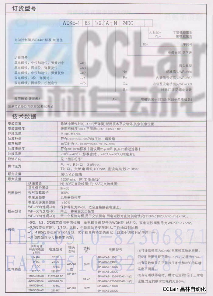 詳細(xì)信息 WDKE-1611/2,WDKE-1630/2,WDKE-1670/2,WDKE-1710/2,WDKE-1751/2,電磁方向控制閥