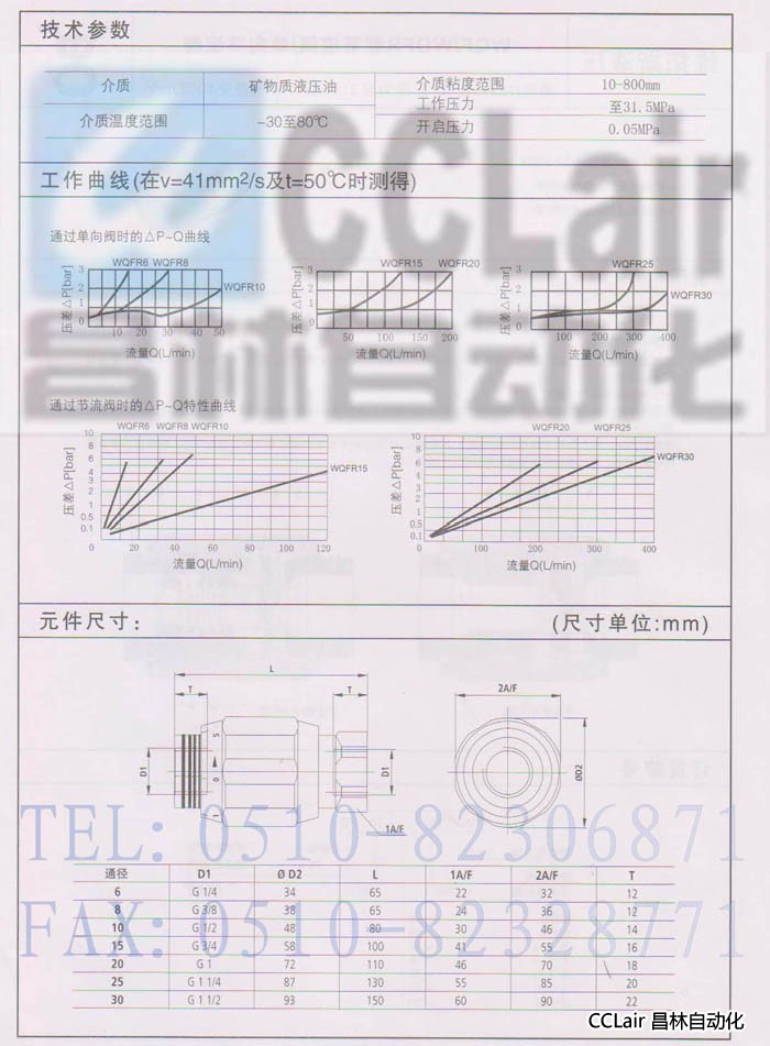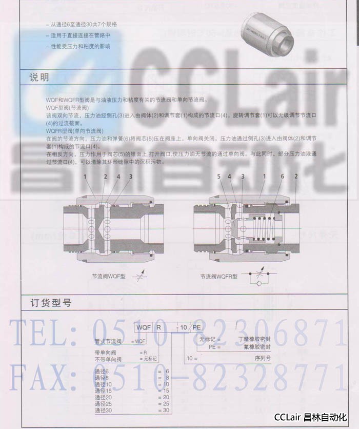 WQF6R-10,WQF8R-10,WQF10R-10,WQF15R-10,WQF20R-10,WQF25R-10,WQF30R-10,單向節(jié)流閥