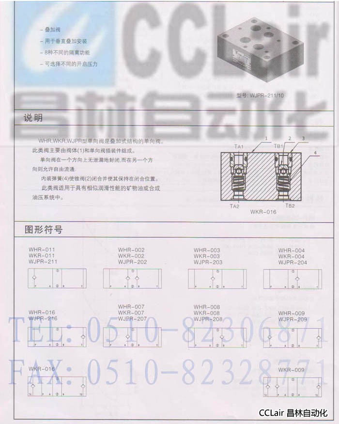 WKR-011, WKR-016, WKR-007, WKR-008, WKR-003, 疊加式單向閥