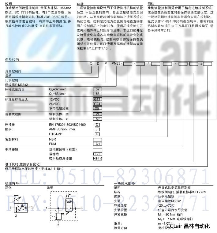 詳細(xì)信息 QDPPM33,插裝式比例 3-通流量控制閥(滑套式線(xiàn)圈)