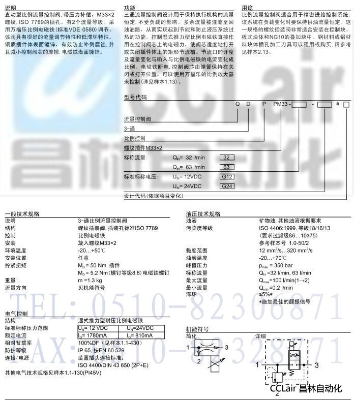 產(chǎn)品: 瀏覽次數(shù):936QDPPM33,插裝式比例 3-通流量控制閥