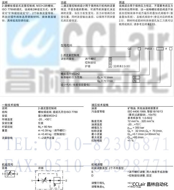 詳細(xì)信息 QZ.PM33,QZDPM33,2-通插裝式流量控制閥