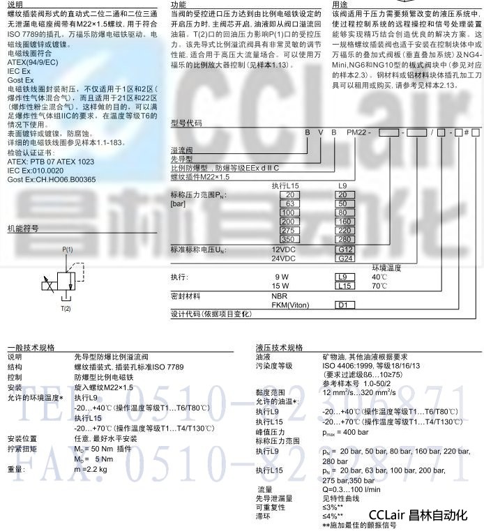 BVBPM22,BVBPM22-350-G24-L15,防爆型先導(dǎo)式比例壓力溢流插裝閥Ex d II C
