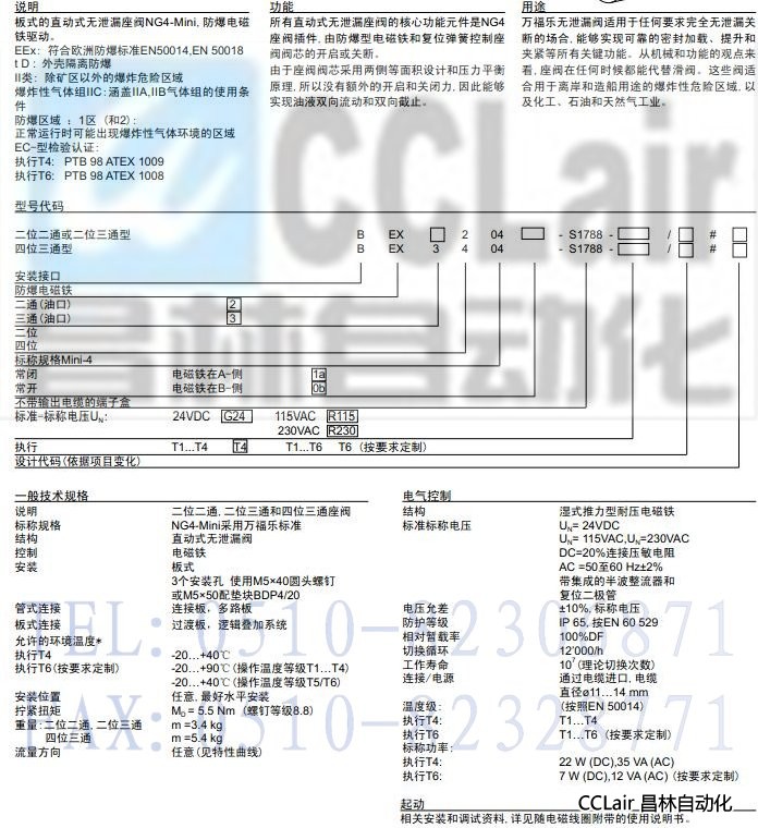 BEXd2204-S1788,BEXd22041a-S1788,BEXd22040b-S1788,板式防爆無泄漏電磁閥EEx d II C