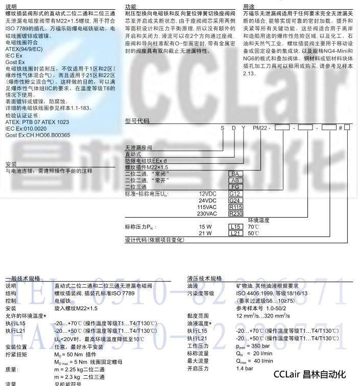 SDYPM22-BA-L21,SDYPM22-AB-L21,直動式插裝式防爆無泄漏電磁閥EEx d II C