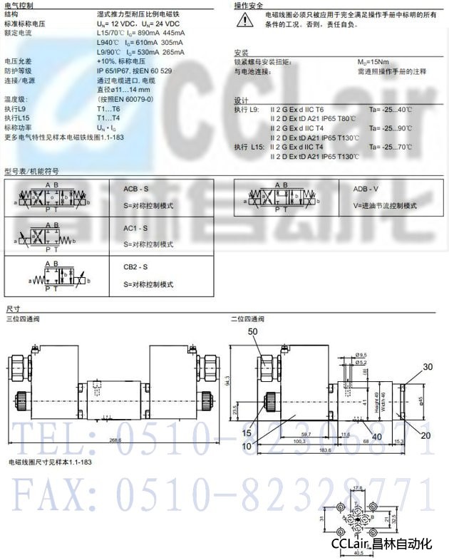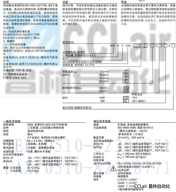 產品: 瀏覽次數:596WDBFA06,防爆式比例換向閥 Ex d II C