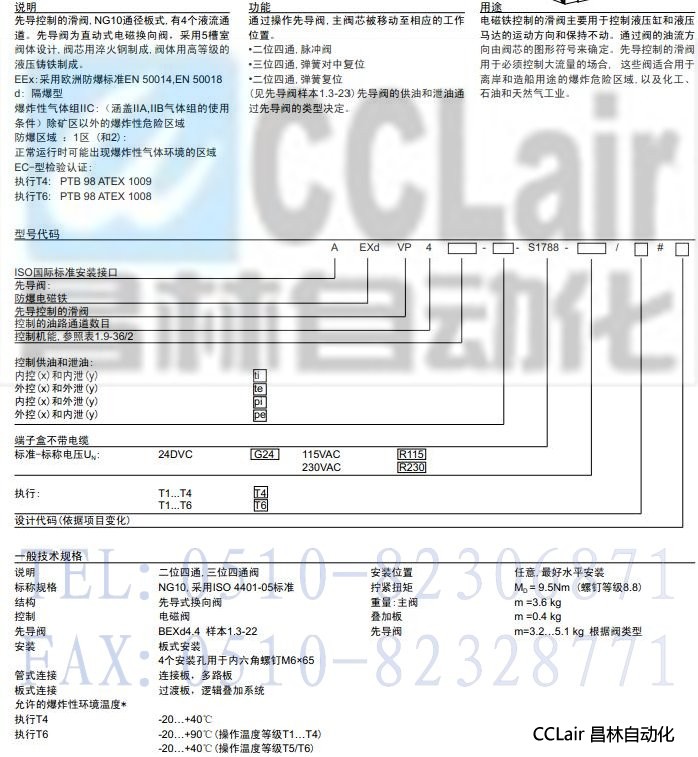 產品: 瀏覽次數(shù):801AEXdVP4x10-S1788,防爆式先導式電磁換向閥EEx d II C