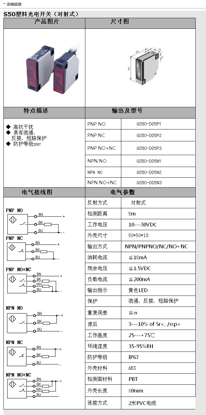 詳細(xì)信息 GS50-DD5P1,GS50-DD5P2,GS50-DD5P3,GS50-DD5N1,GS50-DD5N2,GS50-DD5N3,S50光電(對(duì)射)
