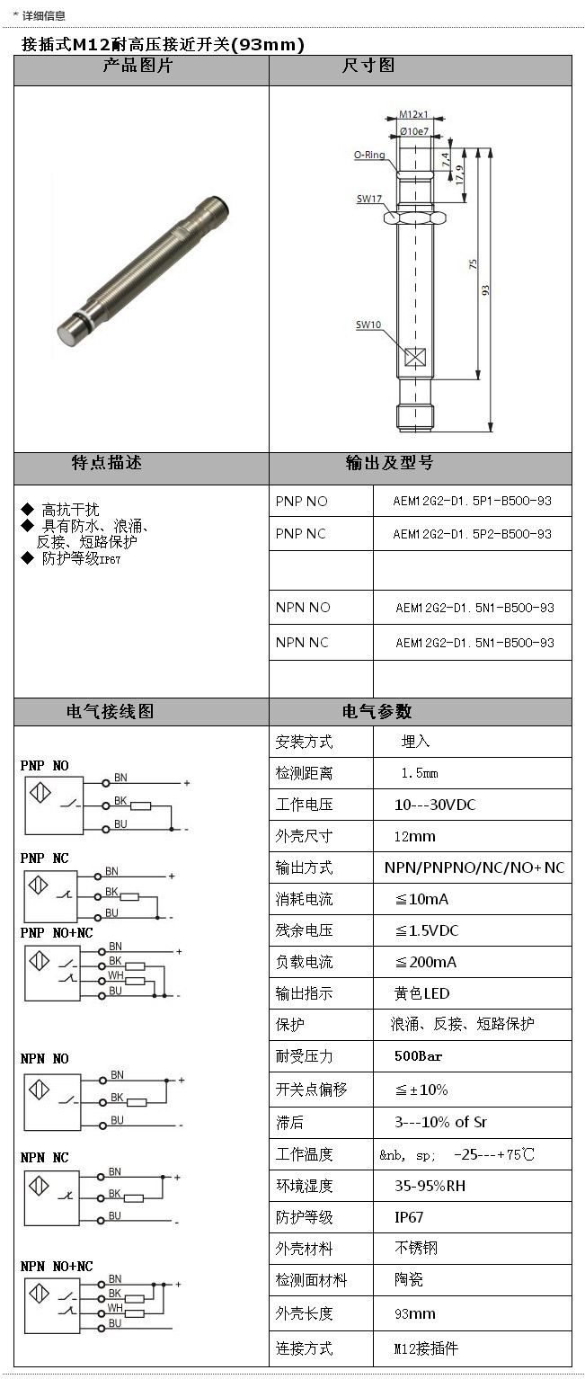 詳細(xì)信息 AEM12G2-D1.5P1-B500-93,AEM12G2-D1.5N1-B500-93,AEM12G2-D1.5N1-B500-93,M12接插式(93mm)