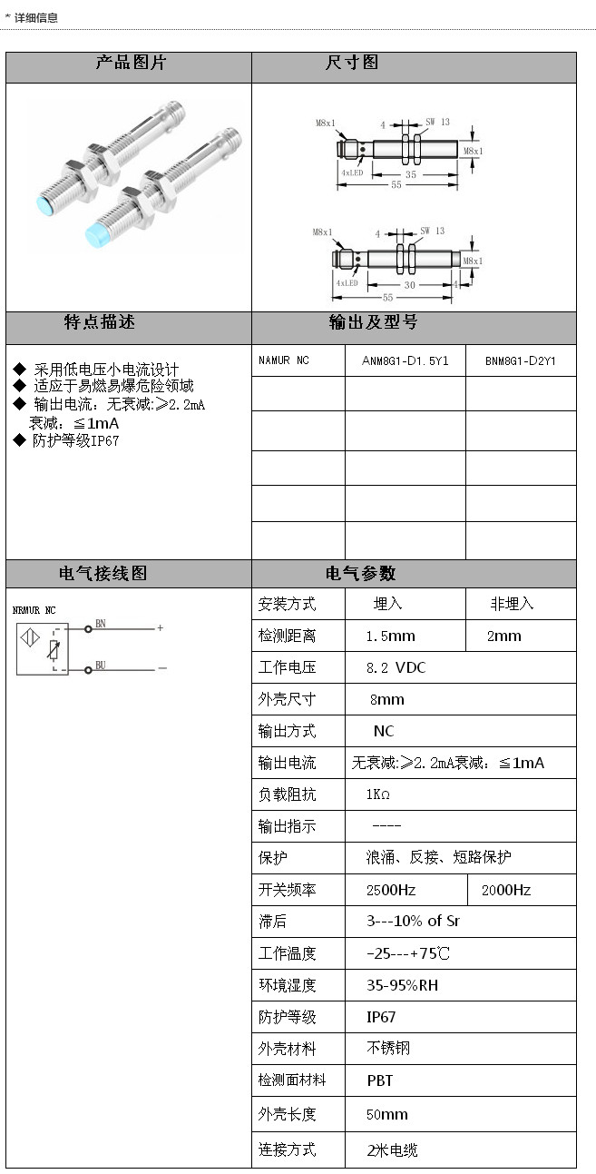 您當(dāng)前的位置:首頁 » 供應(yīng)產(chǎn)品 » ANM8G1-D1.5Y1,BNM8G1-D2Y1,接插式M8本安接近開關(guān)