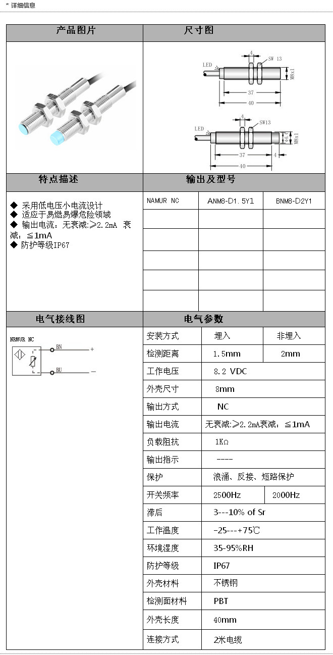 詳細信息 ANM8-D1.5Y1,BNM8-D2Y1,M8本安接近開關(guān)