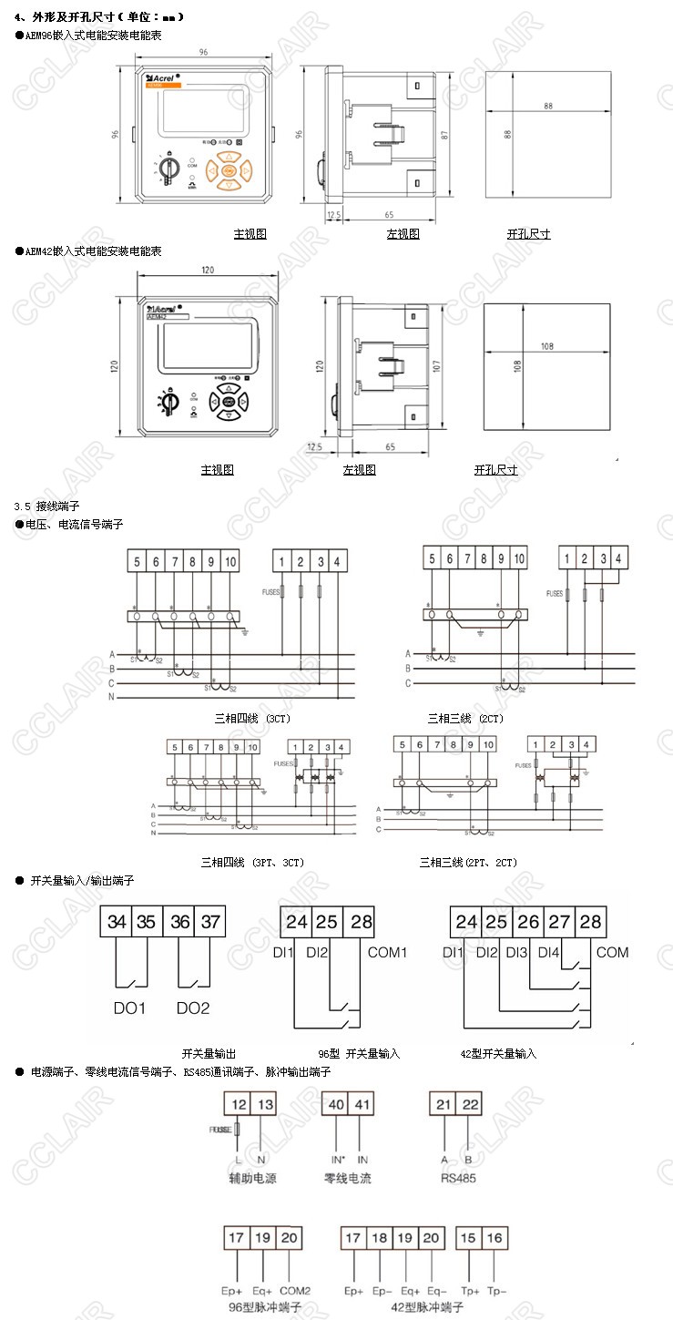 嵌入式安裝電能計量裝置是針對電力系統(tǒng)、工礦企業(yè)、公用設(shè)施的電能統(tǒng)計、管理需求而設(shè)計的一款智能儀表,集成了全部電力參數(shù)測量及全面的電能計量及考核管理,提供上24時、上31日以及上12月的各類電能數(shù)據(jù)統(tǒng)計。帶有開關(guān)量輸入和繼電器輸出可實(shí)現(xiàn)“遙信”和“遙控”功能,并具備報警輸出。帶有RS485通信接口,采用MODBUS-RTU協(xié)議,可廣泛應(yīng)用于各種控制系統(tǒng),SCADA系統(tǒng)和能源管理系統(tǒng)中。
