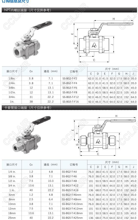 SS-BG2-T-BW8T10-B,SS-BG2-T-BW4T10-B,SS-BG通用球閥—不銹鋼管閥件