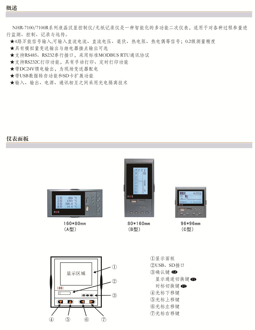 NHR-7100/7100R液晶漢顯控制儀/無紙記錄儀