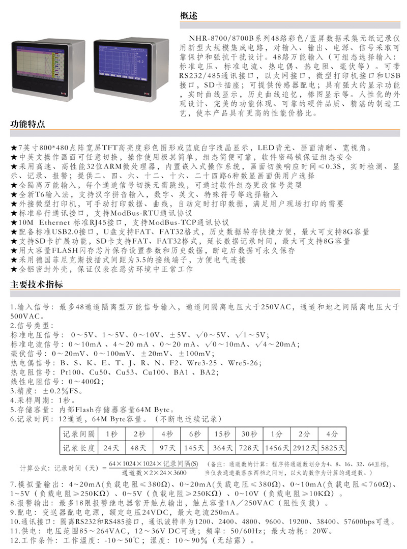 NHR-8700/8700B48路彩色/藍屏數(shù)據(jù)采集無紙記錄儀