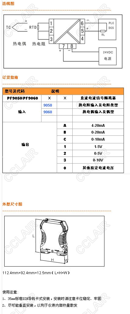 PF9050A,PF9050B,PF9050C,PF90501,PF9050,PF9050熱電阻/熱電偶溫度信號(hào)隔離器