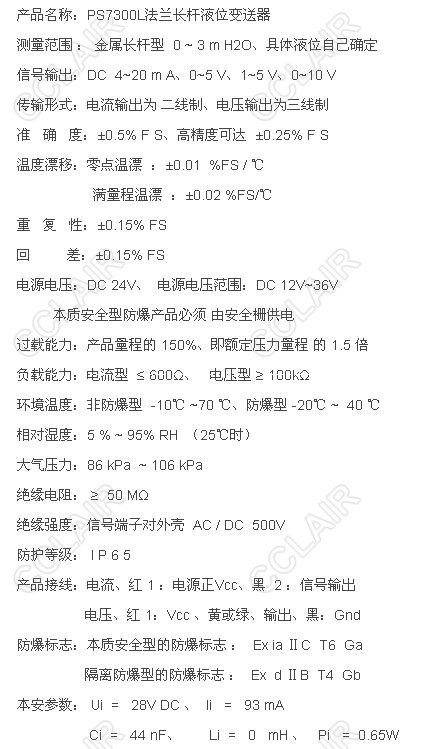 SY-PS7300L-5mH2O-GF,SY-PS7205L-5mH2O-GF,PS7300L-5mH2O-GF,PS7300L桿式法蘭液位計