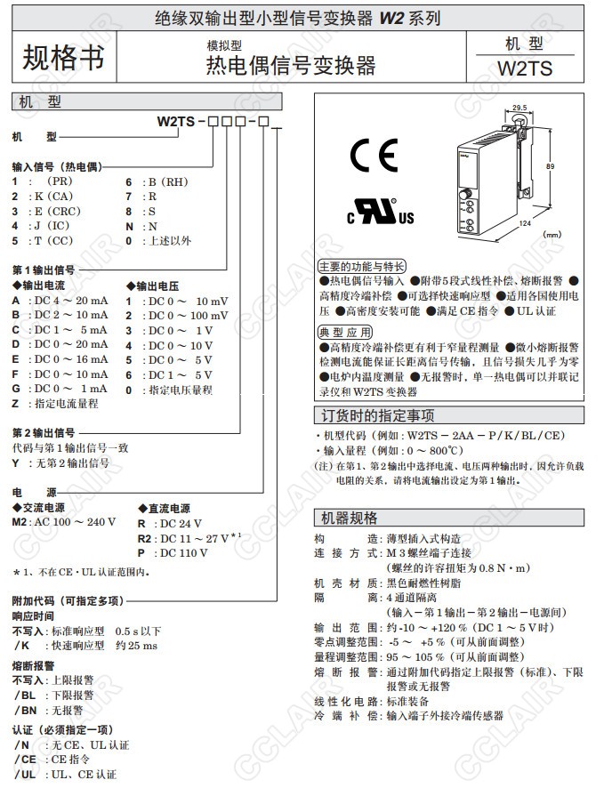 W2TS,W2TS-1,W2TS-2,W2TS-3,W2TS-4,W2TS-5,W2TS-6,W2TS-7,W2TS-8,熱電偶信號(hào)變換器(模擬型)W2TS-N,W2TS-0,