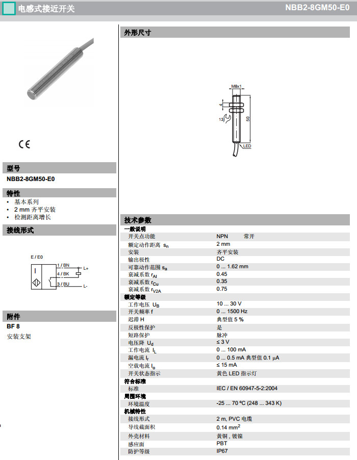 NBB2-8GM50-E0,NBB2-8GM50-E2電感式接近開關