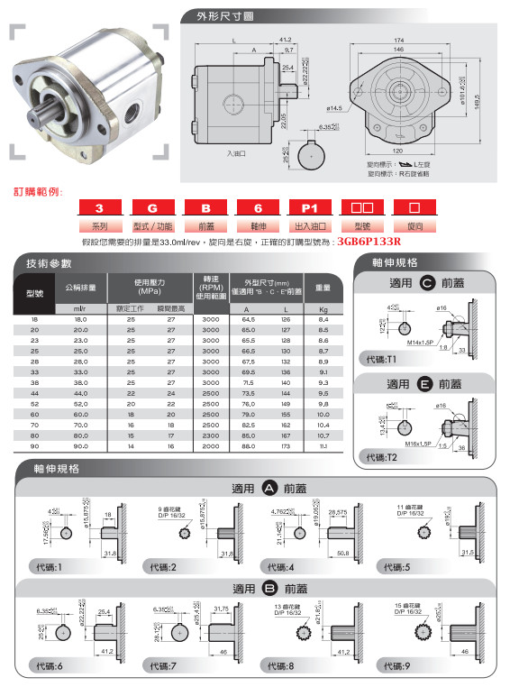 3GB6P128R,3GB6P133R,3GB6P138R,3GB6P144R,HONOR齒輪泵