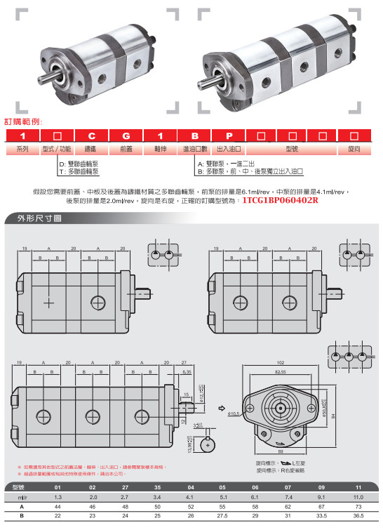 詳細信息 1DCG1AP,1DCG1BP,1TCG1AP,1TCG1BP,1TCG1BP060402R,HONOR鑄鐵多聊齒輪泵