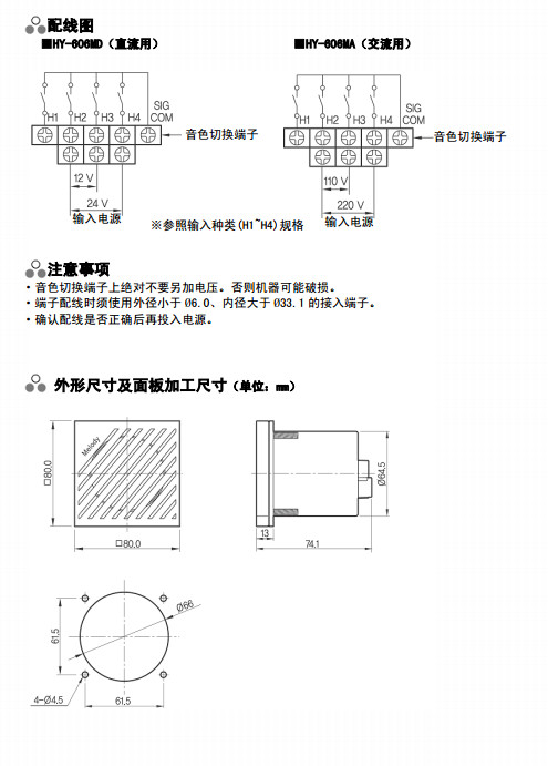 型號: HY-606MD,HY-606MA,4音色旋律蜂鳴器
