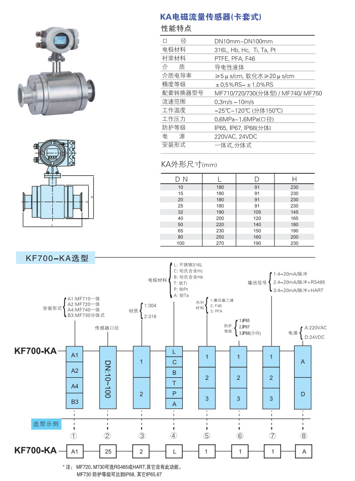 KF700-KA-B3-40,KF700-KA-B3-50,KF700-KA-B3-65,KF700-KA-B3-80,KF700-KA-B3-100,卡套式電磁流量傳感器