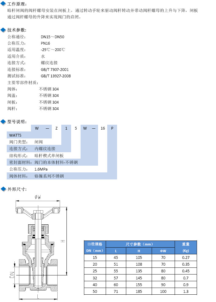 W-Z15W-16P-DN15,W-Z15W-16P-DN20,W-Z15W-16P-DN25,不銹鋼螺紋暗桿閘閥