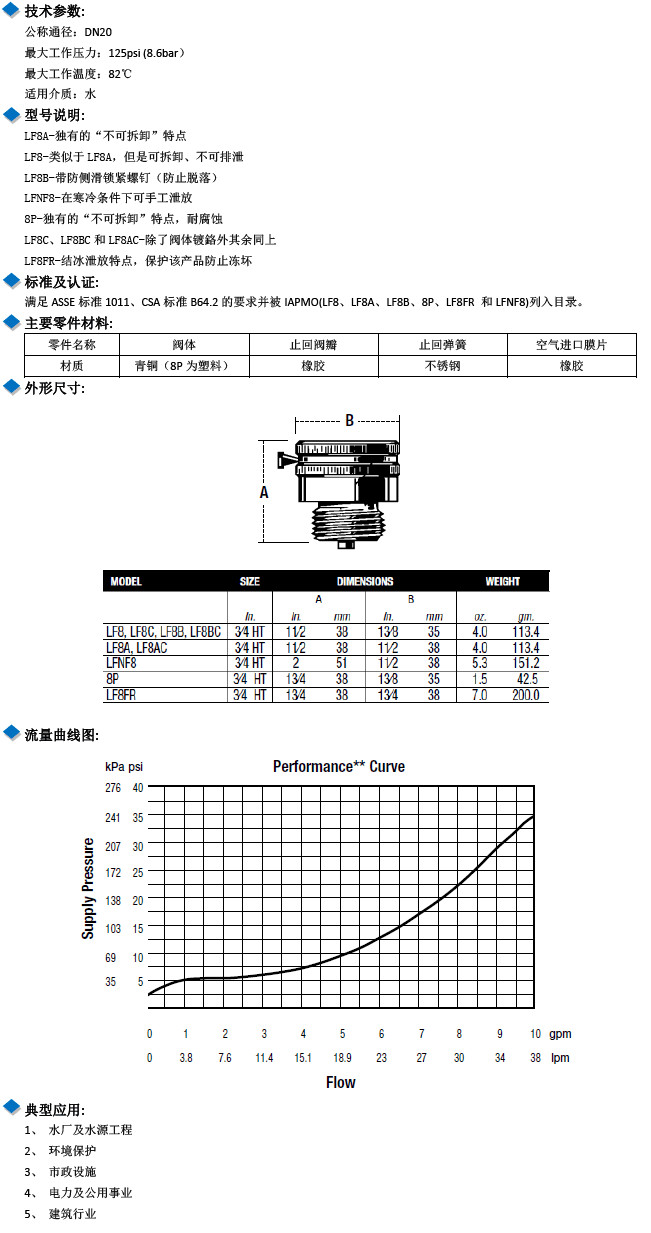 LF8,LF8C,LF8,LF8BC,LF8A,LF8AC,8P,LF8FR,低鉛軟管連接真空破壞器