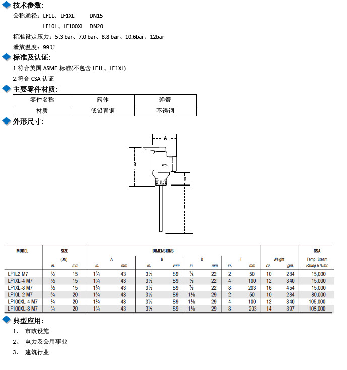 LF1L2 M7,LF1XL-4 M7,LF1X6-8 M7,LF10L-2 M7,LF100XL-4 M7,LF100XL-8-M7,低鉛溫度-壓力閥