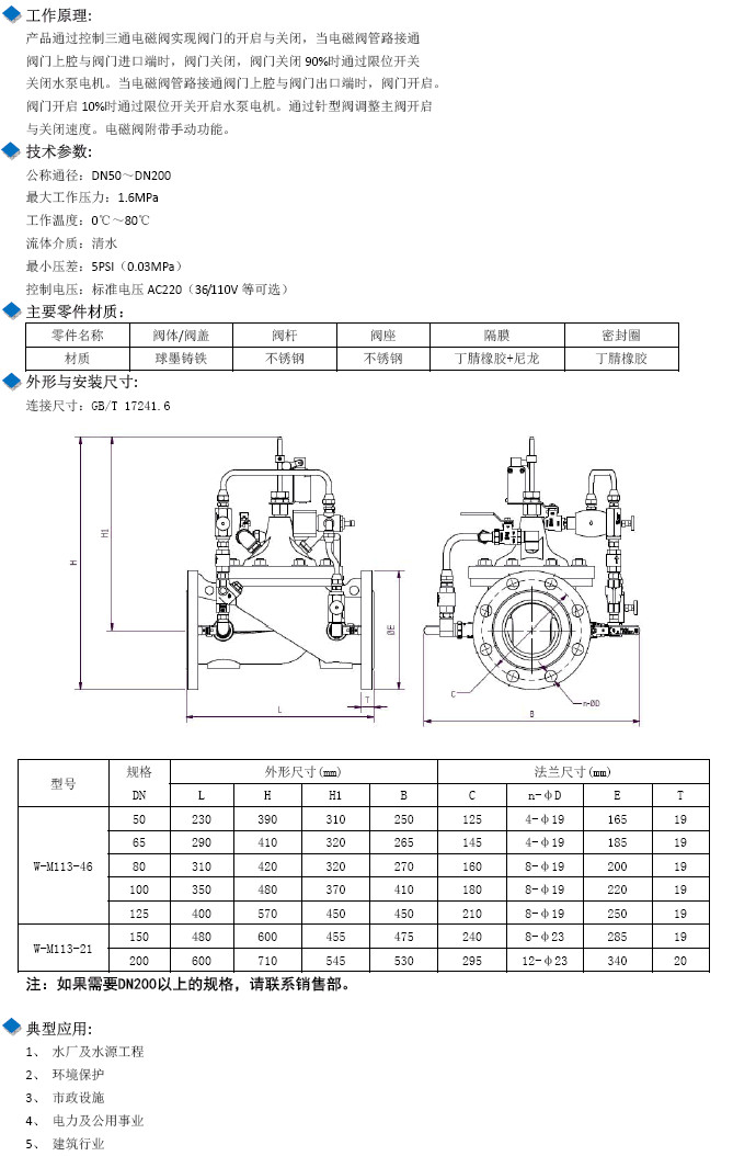 W-M113-46-DN50,W-M113-46-DN65,W-M113-46-DN80,W-M113-21-DN150,水力控制閥