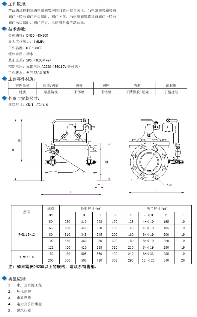 W-M113-12-DN50,W-M113-12-DN65,W-M113-12-DN80,W-M113-6-DN150,水力控制閥