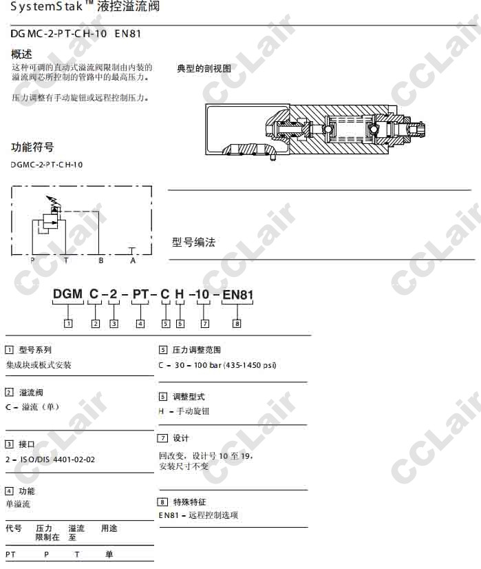 DGMC-2-PT-CH-10-EN81,液控溢流閥,威格士-Vickers